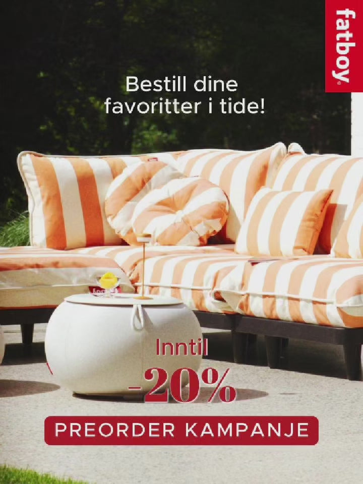 Vårens vakreste eventyr er i gang hos Bedtime! BESTILL NÅ og SPAR 1000-vis på dine nye utemøbler. Sikre deg dine favoritter fra Fatboy når de kommer på lager og ha utemøblene på plass når solen titter frem!