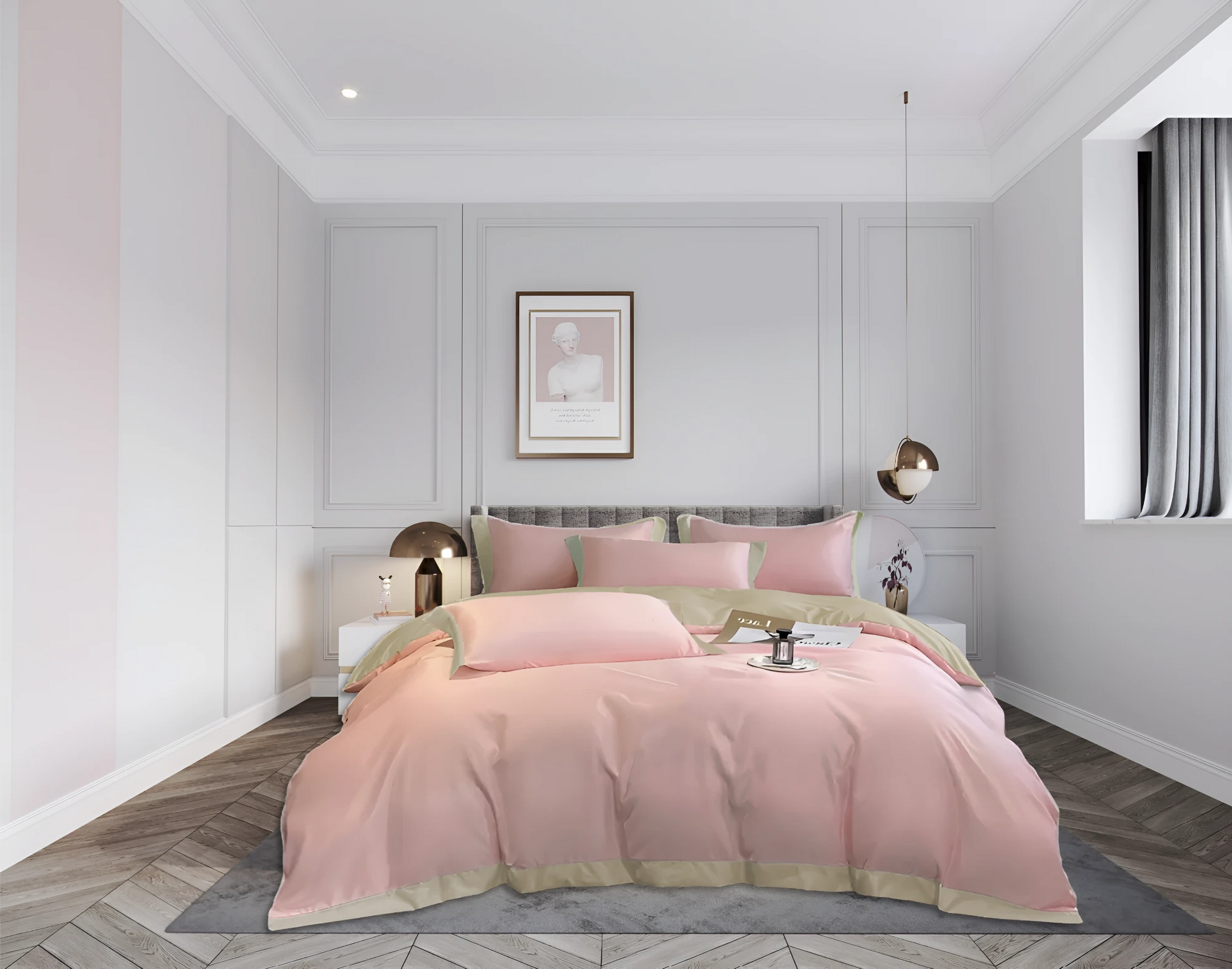 Tosidig sengetøy i dus rosa og beige bambusviskose