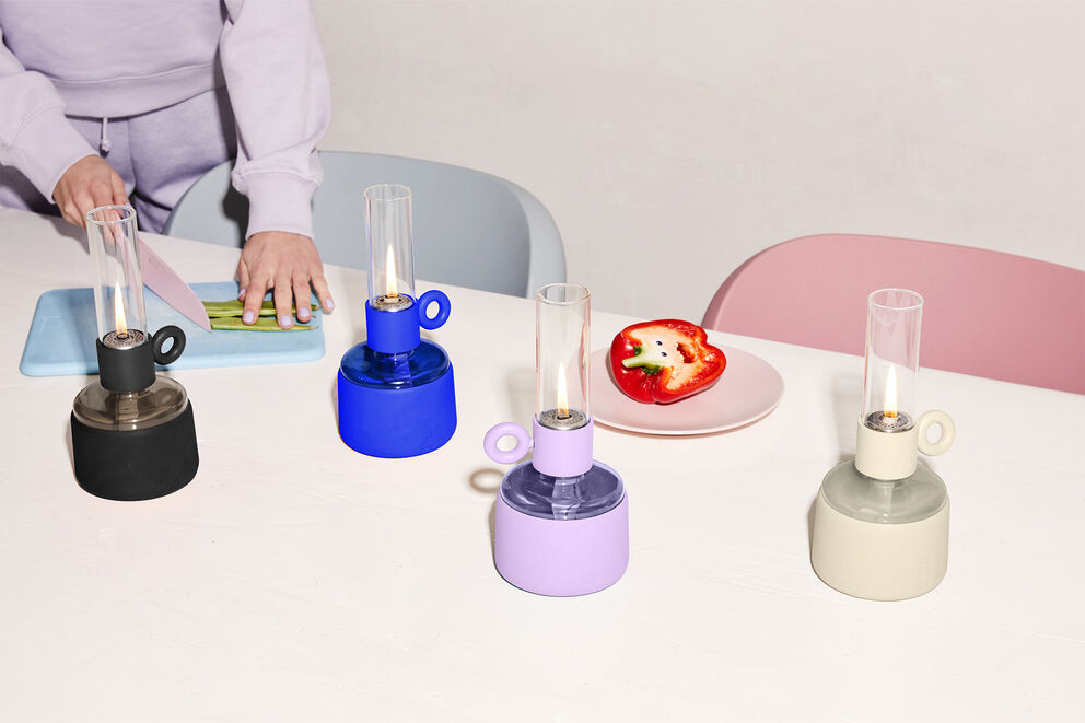Flamtastique er den overdimensjonerte, replika-oljelampen for utendørs bruk. Søskenbarnet hans, Flamtastique XS, bringer den samme bålstemningen innendørs til bordet ditt. Vi har oversatt den tradisjonelle, gamle oljelampen til en elegant, ny versjon. Flamtastique XS drives av lampeolje. Takket være den gjennomsiktige delen av foten kan du alltid se nøyaktig hvor mye olje som er igjen. Og det matte silikonbelegget gjør denne glassoljelampen ekstra sterk. For å forlenge en ny veke, bare vikle den særegne tappen. Endeløse, uforglemmelige kvelder, kom og bli med.