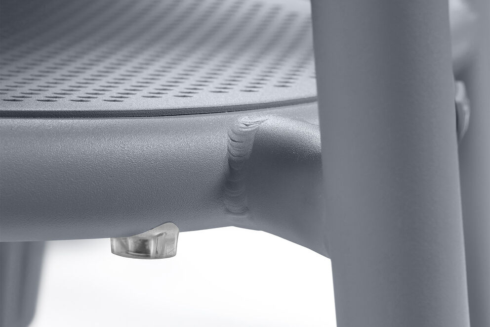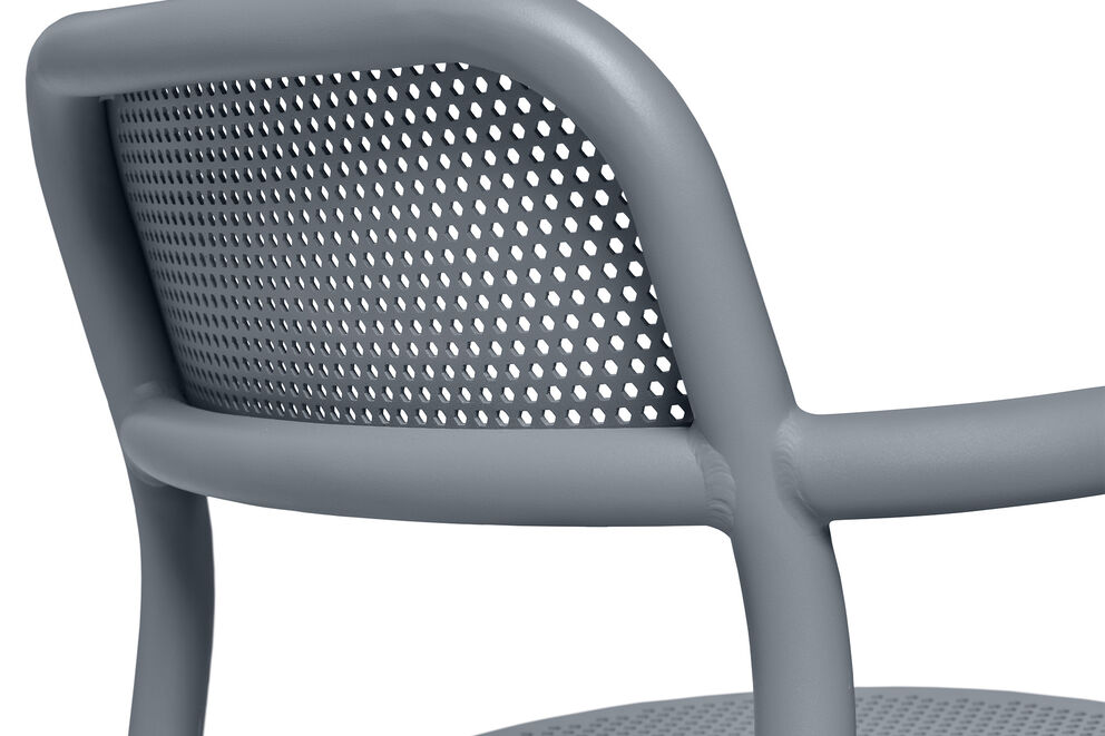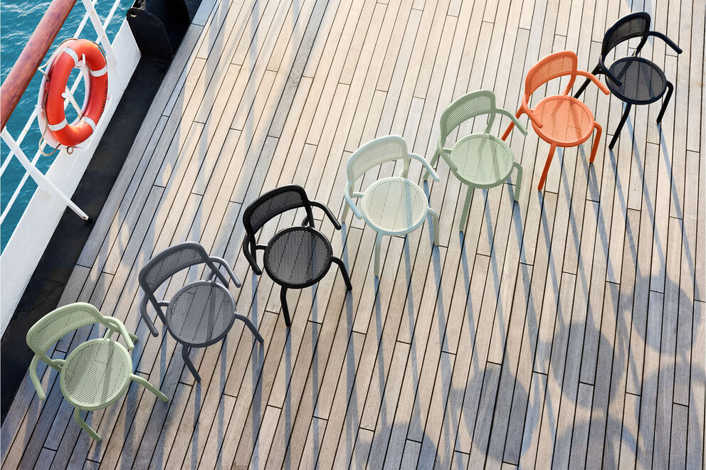 Toní stolen er en robust hagestol med et nikk til den klassiske bistrostolen. Toní lenestol er laget av høykvalitets aluminium og utstyrt med utendørsbelegg av høyeste standard, er rustfritt stål, fargeekte og motstandsdyktig mot alle værtyper. Løft gjerne Toní lenestol og oppdag hvor lett den er. Den er praktisk, da du enkelt kan stable opptil fire stoler.