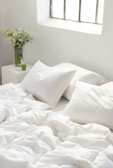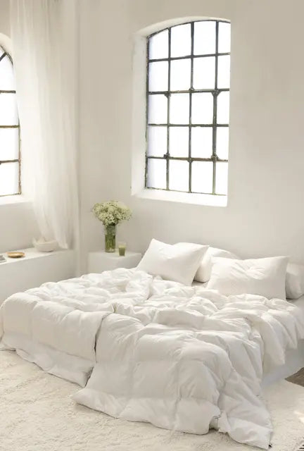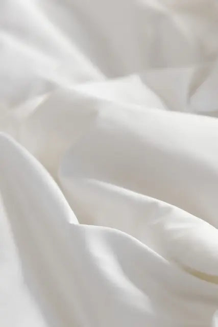90 % europeisk muscovy andedun og 10 % små fjær gir god isolasjon, lav vekt og litt mer tyngde og spenst. Fjærandelen gir dynen en rolig, stabil følelse mot kroppen. Trekket er i TC280 cambric – en tettvevd og lett bomullskvalitet som er både pustende og myk mot huden.
