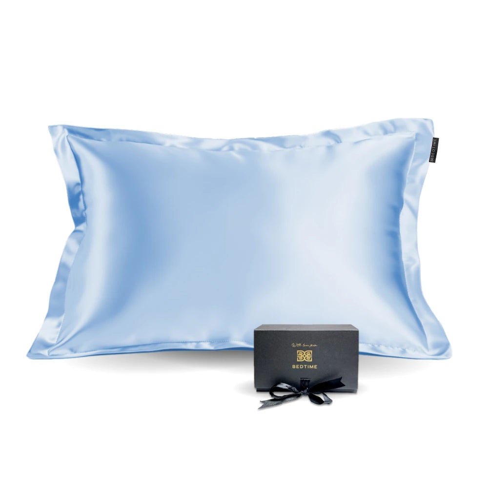 Silkeputevar med dekorativ kant i 100 % Mulberry silke – lyseblå farge
