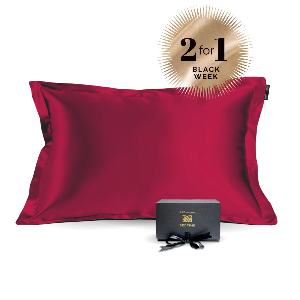 Silkeputevar med dekorativ kant i 100 % Mulberry silke – rubinrød
