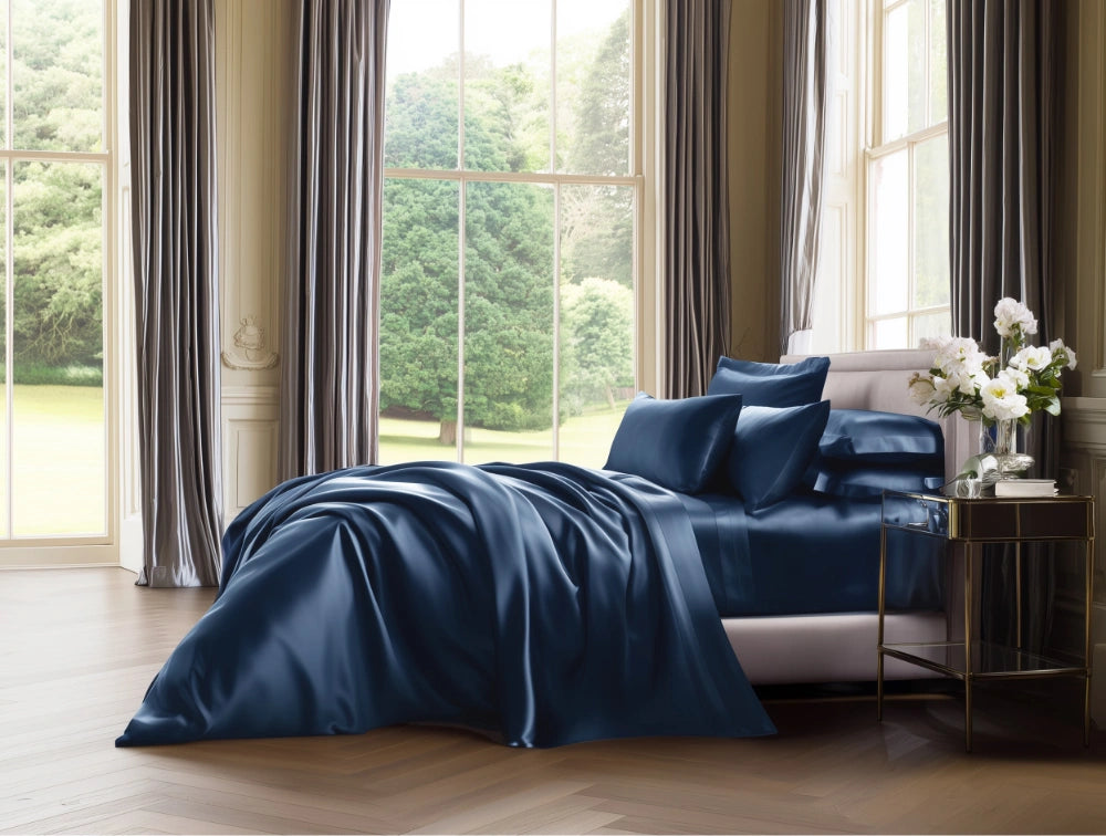Mørkeblått Mulberry silkelaken i mange størrelser