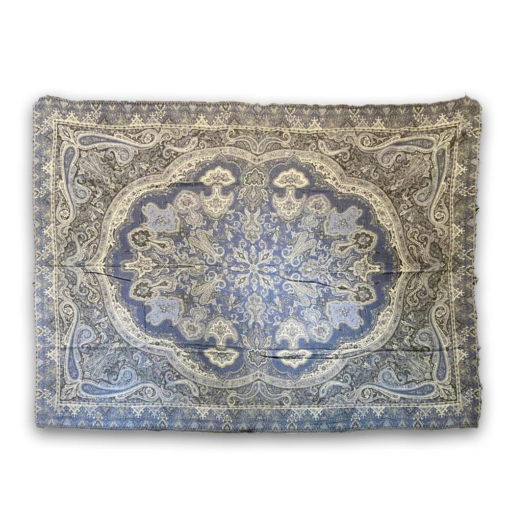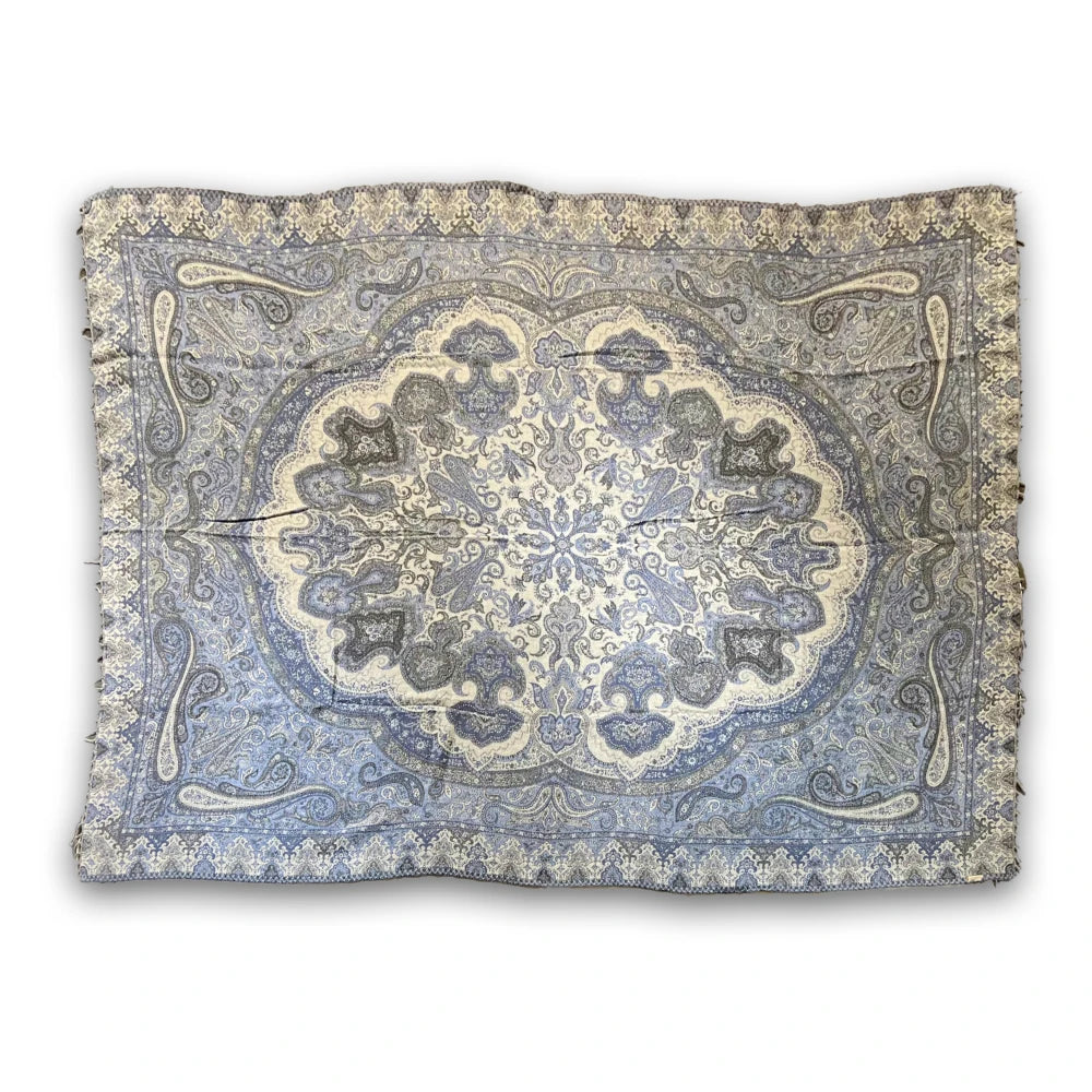 Teppet er 100% deilig og myk ull. Størrelse er 140×200 cm. Teppet må renses. Paisley mønster i nydelige duse blåfarger. Ullpledd som gir en herlig myk følelse. Vevd paisley mønster.