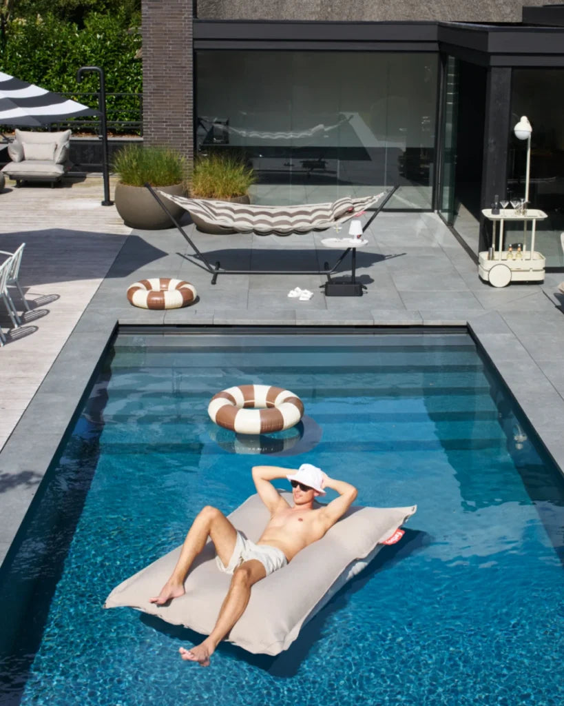 Visste du at enkelte sakkosekk modeller, som Fatboy Floatzac, kan brukes på vannet? Perfekt for basseng, brygge eller strand – et must for sommeren.